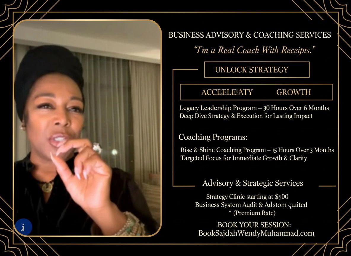 "When you sit with me, you are not just getting advice — you are entering a sacred space of clarity, strategy, and elevation. I help entrepreneurs, creators, executives, and visionaries break through internal and external barriers, align with their authentic frequency, and build enterprises that are spiritually grounded, economically sound, and prepared for the future. If you are ready for transformation, ready for truth, and ready to move with power, then you are ready for this opportunity."